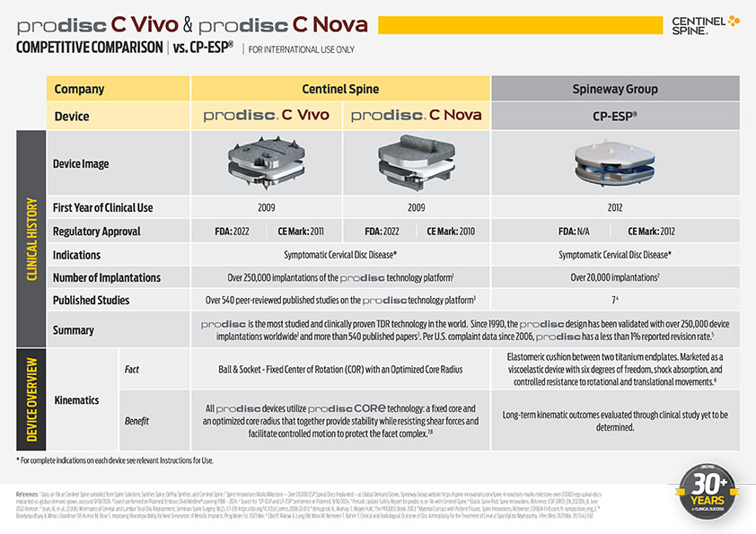 Centinel Spine recently released a comprehensive competitive comparison of prodisc C Vivo and prodisc C Nova versus CP-ESP—the seventh international prodisc C Vivo and prodisc C Nova Competitive Comparison available in the last few months.